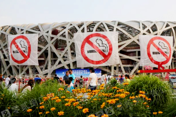 北京鳥(niǎo)巢懸掛巨幅禁煙標(biāo)志廣告畫(huà)面 2015年05月30日,被外界稱(chēng)為最嚴(yán)的《北京市控制吸煙條例》將于2015年6月1日正式實(shí)施,目前已進(jìn)入24小時(shí)倒計(jì)時(shí),北京機(jī)場(chǎng)、火車(chē)站、汽車(chē)站在此條例下將再無(wú)吸煙室。其示范效應(yīng)將對(duì)其他各地進(jìn)一步制定和落實(shí)控?zé)煑l例,起到關(guān)鍵的參考作用。