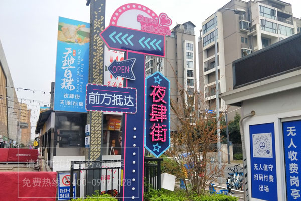 ②垂直標(biāo)志牌。這種招牌經(jīng)常被看到,也就是說,它被放置在門口的一側(cè),通常由發(fā)光二極管燈箱制成,以增強對行人的吸引力。這些是常見的招牌。你可以根據(jù)自己的需要選擇適合你的招牌。