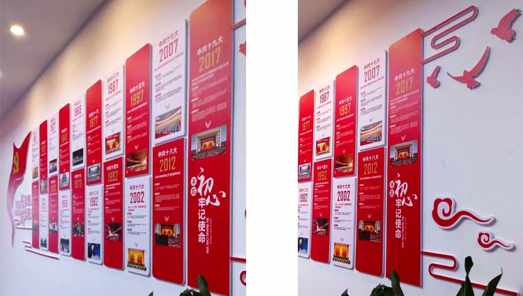 文化墻應反映時興的設計風格,但決不是全部設計方案技術性的簡易拼接和建筑裝飾材料的混亂堆積。應當挑選并可選擇性地應用它來適度地表述表達效果,并留意設計理念和總體維護保養(yǎng)的一致性,便于能夠更好地體現(xiàn)節(jié)目主持人的文化藝術品位。