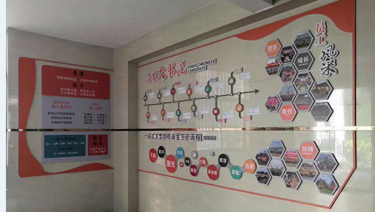 關鍵顏色一直是設計方案的關鍵。色調的感染力十分強。大家的雙眼機敏的覺得,心里所聞和所想。文化墻的關鍵顏色立即危害大家的體會和觀念。關鍵色調是文化藝術。墻的生命確立了全部文化墻的關鍵顏色和整體設計風格的基本。關鍵色調的挑選能夠依據(jù)企業(yè)領域的特性明確,比如環(huán)保設備公司的翠綠色,純凈水生產制造企業(yè)的深藍色,電子產業(yè)的簡易黑與白等,或立即應用關鍵色調在企業(yè)logo上。