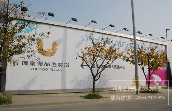在墻壁將界面鋪好后,上邊和下邊各自應用木板加釘子(水泥鋼釘)將木板或裝飾設計條,釘在界面上,進而將廣告界面貼到在施工工地外墻壁。缺陷:不好看,由于墻壁廣告界面的上面與下面上是木板,因此 不好看。