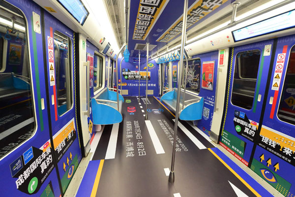 近日“成都國(guó)際車(chē)展號(hào)”地鐵專(zhuān)列上線,變身1號(hào)線主題車(chē)廂亮相,帶有CDMS“標(biāo)志藍(lán)”一路穿梭,整個(gè)車(chē)廂以明快藍(lán)為色彩基因,碰撞色彩、互動(dòng)插畫(huà)的設(shè)計(jì)表達(dá),營(yíng)造出年輕潮流、時(shí)尚活力的風(fēng)格,環(huán)繞式超時(shí)空的體驗(yàn)空間,吸引了眾多市民“拍照打卡”呢!