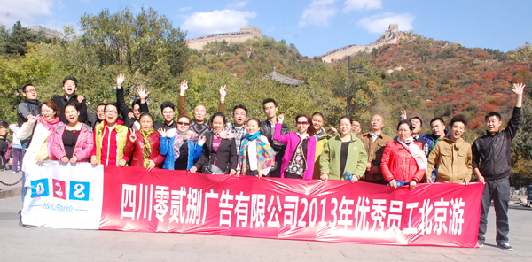 2012年5月到2013年5月四川028廣告公司優(yōu)秀員工到北京旅游,我們從2013年9月19日早上7點(diǎn)出發(fā),坐上了從成都飛往北京的飛機(jī)。到了北京我們第一時(shí)間來(lái)到了故宮,聽(tīng)導(dǎo)游詳細(xì)的講解它的歷史文化。之后的幾天我們分別來(lái)到了八達(dá)嶺長(zhǎng)城、頤和園、香山、天安門廣場(chǎng)看升旗儀式、中國(guó)歷史博物館、毛主席紀(jì)念堂、還有到天津看周總理紀(jì)念館等。
