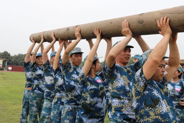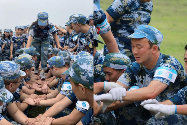 以20個人的身體組成橋墩,在戰(zhàn)場上完成80人的循環(huán)運輸,幾次的失誤后,找到了團隊的默契,在大家拼搏的汗水和疼痛的淚水中突破了目標(biāo)時間,順利完成了挑戰(zhàn)。