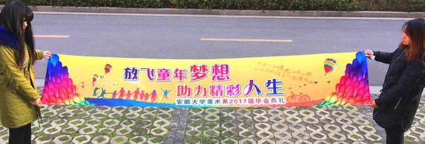 成都彩色條幅制作廠家 我們四川零貳捌成都廣告公司新進(jìn)購了一臺(tái)熱升華機(jī)器,這臺(tái)機(jī)器可以說是熱轉(zhuǎn)印機(jī)器的加強(qiáng)升級(jí)版,不只是可以制作單色條幅還可以制作彩色條幅了,除了條幅還可制作注水旗,刀旗,迎風(fēng)旗等,畫面更加的清晰,長(zhǎng)時(shí)間使用不變色,那下面我們就來給大家講一講展會(huì)慶典常用的條幅廣告: