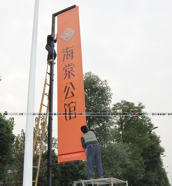 成都雙流028噴繪公司為某公司制作生產(chǎn)安裝的道旗畫面。