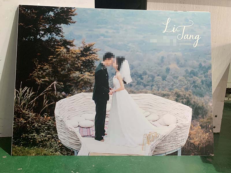 KT板經(jīng)過UV噴繪可以真實(shí)還原照片清晰度和色彩,圖片由028廣告公司采集,是婚禮使用的KT板宣傳制作,由圖可見還原度。