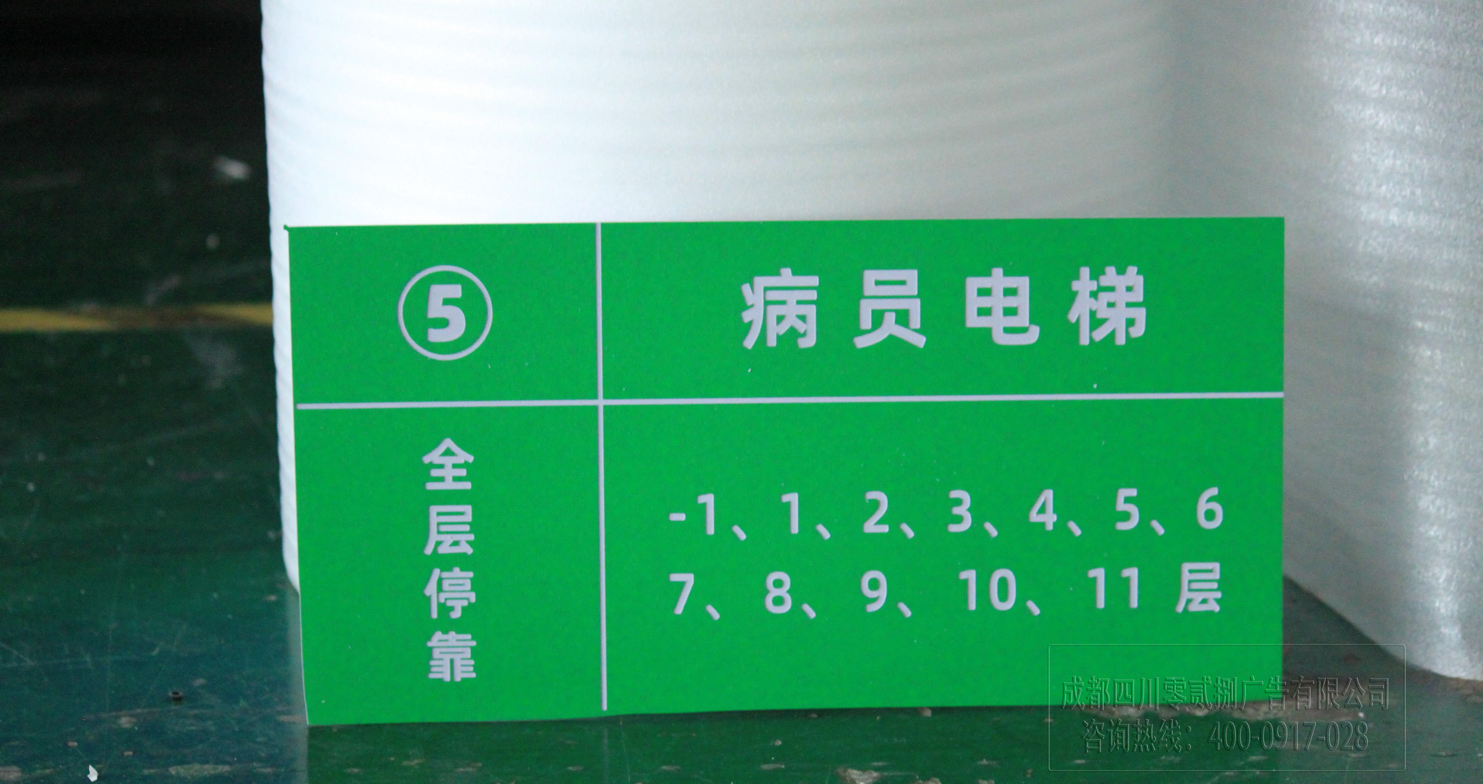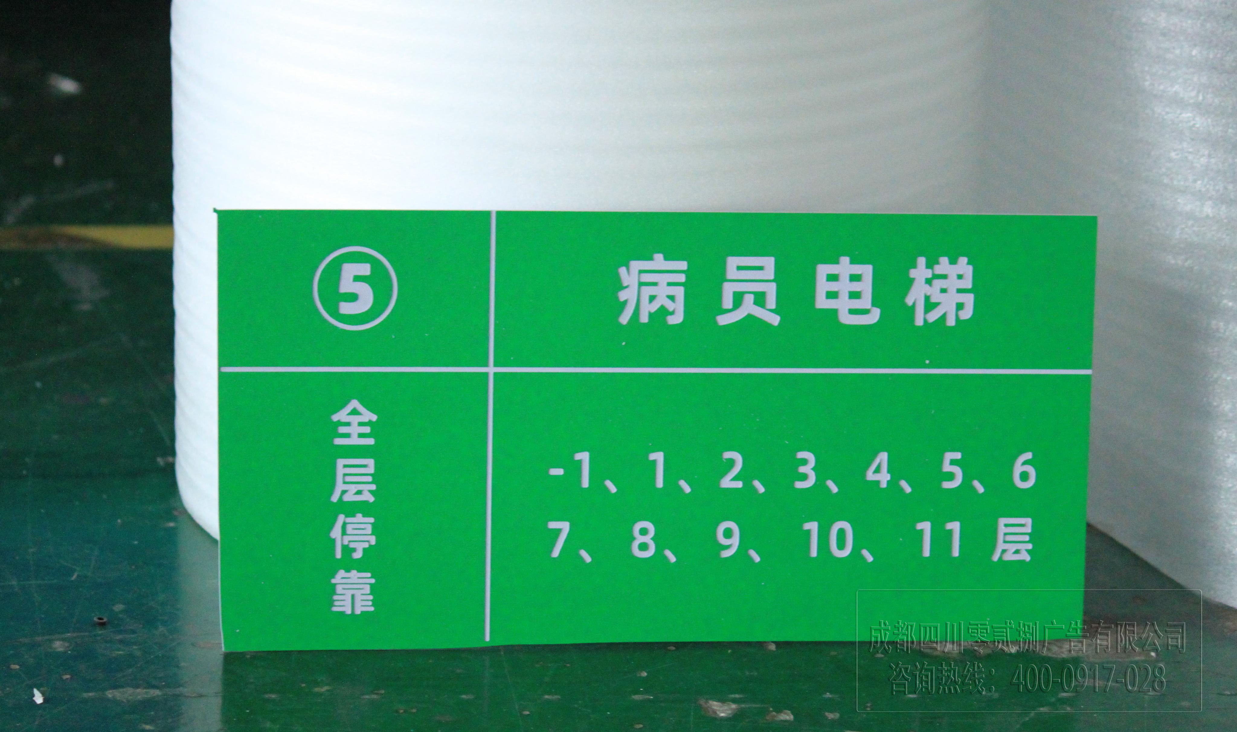 醫(yī)院電梯提示牌就是由噴繪雙色板制作而成,固定不會(huì)影響美觀。圖片為028廣告公司加工而成,需要做大型指示牌、樓層套組指示牌、醫(yī)院、學(xué)院等等指示牌都可制作!