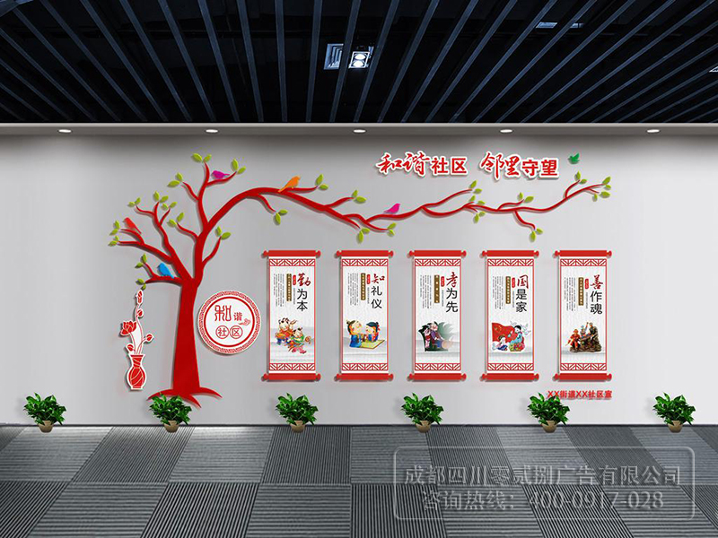 這一組圖片是社區(qū)文化墻的部分展示,每一片墻壁上都是不一樣的主題宣傳。成都廣告公司(028廣告)根據(jù)社區(qū)給出的要求,制作出貼合每個(gè)主題,欣欣向榮、朝氣、淳樸的社區(qū)文化墻,更貼近居民的日常生活。
