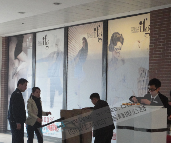 旗幟布:本公司為某品牌制作的旗幟布畫面,具有防水、防紫外線、畫面精致美觀的優(yōu)點(diǎn),尤其具有紡織品的特殊質(zhì)地,極為典雅高貴,特別適用于精品百貨、化妝品專柜的燈箱等高品質(zhì)宣傳領(lǐng)域。