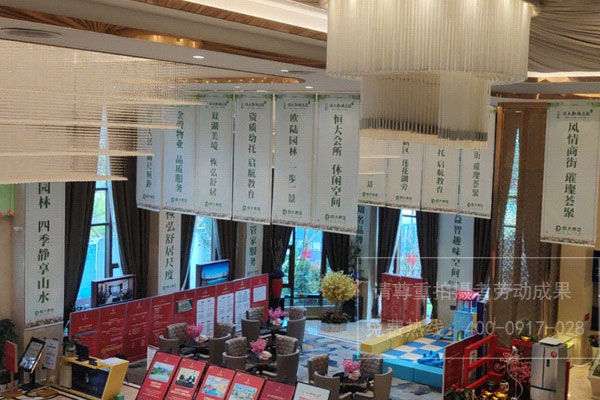 恒大御湖莊園營(yíng)銷中心雙噴布吊旗制作安裝
