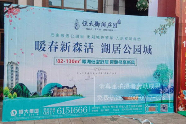 恒大御湖莊園戶外桁架搭建營(yíng)銷宣傳戶外噴繪廣告畫面制作