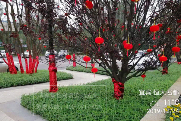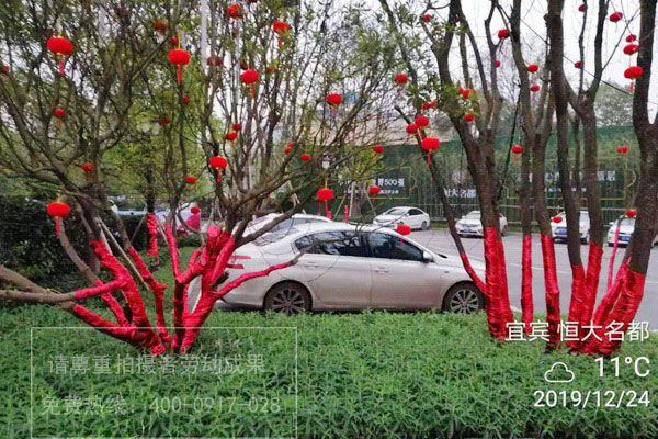 成都廣告公司主要為您展示我們?yōu)橐速e恒大名都售樓處進行的2020新年春節(jié)氛圍布置,主要涉及戶外景觀燈籠懸掛、樹木枝干系紅布、路燈燈柱系紅布、氣球裝飾等現場布置圖片,一起來看看吧!