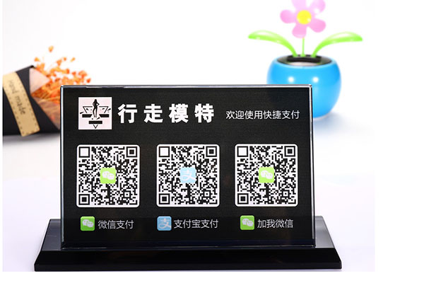 二維碼支付牌的制作材質(zhì)是亞克力板材質(zhì)、PVC板材質(zhì)、木材材料等,一般PVC板材質(zhì)和亞克力板材質(zhì)使用的比較常見一點,任何商家都比較普遍的使用。而木質(zhì)材料一般更常見于比較有特色一點的店面,比如花店等地。這類材質(zhì)制作出來比較復(fù)古一點,也更親近于自然一點。