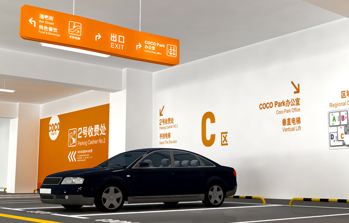 大型停車場導向標識系統(tǒng)規(guī)劃設(shè)計 隨著社會經(jīng)濟的迅速發(fā)展,城市汽車的擁有量不斷增加,汽車在給人們帶來交通便利的同時,由于停車難、找車難等問題也給人們的工作生活帶來了諸多不便,尤其是商場、酒店、醫(yī)院等公共建筑下設(shè)置的公共地下停車空間,因為一般車位規(guī)模較大,地下車庫的層數(shù)也不盡相同,所以地下停車場是最難辨別方位的場所之一,因此標識導視系統(tǒng)的規(guī)劃設(shè)計顯得尤為重要。好的地下停車場導向標識系統(tǒng)設(shè)計不僅能讓人們更有方向感,同時也可以給人專業(yè)、放心的踏實感。下面我們零貳捌成都廣告公司介紹一下大型停車場導向標識系統(tǒng):