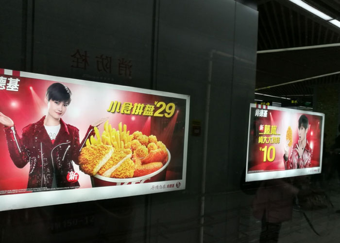 (1)內(nèi)容趨向以商業(yè)性為主,兼顧公益性和地方特色 地鐵廣告內(nèi)容以商業(yè)為主,時(shí)效性較強(qiáng),在企業(yè)推出新產(chǎn)品或季節(jié)更替、突發(fā)重大事件時(shí),企業(yè)就會(huì)更換廣告主題和表現(xiàn)手法,且時(shí)換時(shí)新。地鐵是公共產(chǎn)所,必須肩負(fù)受眾的信息需求,擔(dān)負(fù)起一定的社會(huì)責(zé)任,因而公益廣告的公益信息內(nèi)容發(fā)布也是地鐵廣告的重要組成部分。在某種程度上,地鐵廣告還結(jié)合公益性和商業(yè)性表現(xiàn)出隱形廣告的特點(diǎn)。