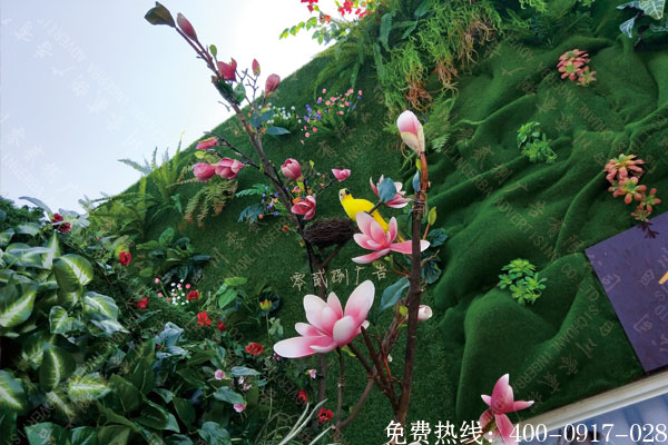 7、安裝完圍墻柵欄仿真模擬假草坪后,可以在上面釘上宣傳詞個(gè)性字體或者圖案等。