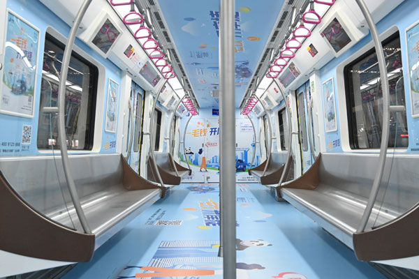 成都地鐵3號(hào)線“摩捷出行”主題專(zhuān)列開(kāi)跑啦!列車(chē)以“安逸成都,公園城市,快樂(lè)出行”為主題,畫(huà)面呈現(xiàn)了成都豐富的特色建筑以及國(guó)寶熊貓等。列車(chē)上的成都“摩捷出行”畫(huà)卷,帶著安逸成都、快樂(lè)出行,從低碳環(huán)保美好成都出發(fā),駛向快捷自由的全新多元化出行。