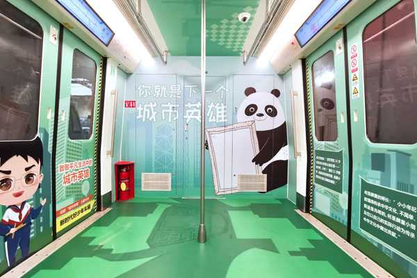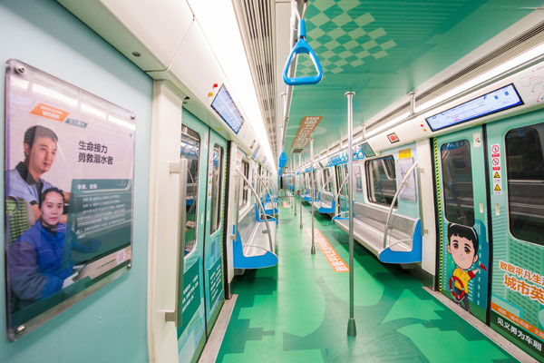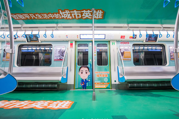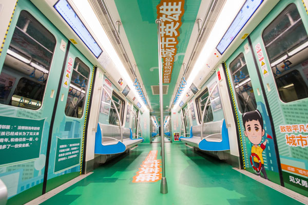 “城市英雄”主題專列由6節(jié)車廂組成,每節(jié)車廂展示不同類別的“城市英雄”,包括助人為樂、見義勇為、誠實(shí)守信、敬業(yè)奉獻(xiàn)、孝老愛親以及新時(shí)代好少年。