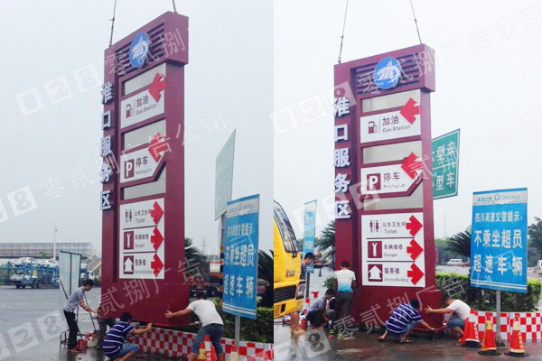 服務(wù)區(qū)是高速公路上必不可少的設(shè)施,能夠為高速公路的使用者提供服務(wù),對保障行車安全、保證運輸效率、緩解駕駛員在生理上的過度疲勞和車輛使用上的極限狀況十分重要。隨著高速公路通車?yán)锍痰牟粩嘌由?、客流量的不斷增長,必然要求服務(wù)區(qū)擴大服務(wù)項目的種類、數(shù)量等等,從而形成特殊的經(jīng)濟(jì)區(qū)域,其產(chǎn)業(yè)價值的重要性正日益受到重視。每一個服務(wù)站都會制作導(dǎo)視標(biāo)牌和發(fā)光字,并且離服務(wù)區(qū)幾百米遠(yuǎn)之外路面上設(shè)置指路標(biāo)識牌提醒人們前方有服務(wù)站。所以服務(wù)區(qū)的導(dǎo)視標(biāo)識的制作是非常重要的。