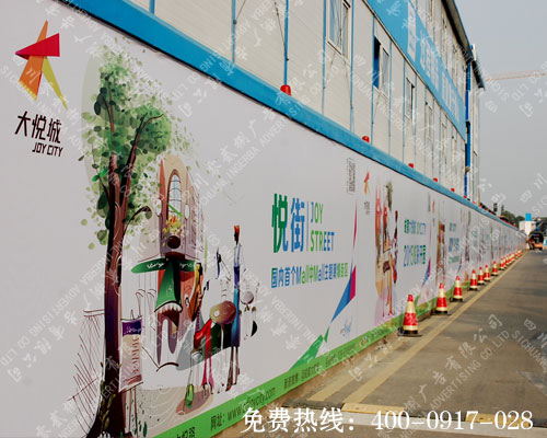 成都工地人造草坪圍擋廠家 人造草皮圍擋是兩個(gè)部分結(jié)合而成(圍擋+人工草坪),主體是圍擋,人造草皮只是覆蓋上面的裝飾材料。以往我們常見(jiàn)的工地圍墻圍擋多為噴繪布材料噴繪加工而成的廣告畫面,畫面內(nèi)容多為工地建設(shè)完成效果圖,文化宣傳標(biāo)語(yǔ),商業(yè)宣傳廣告等,噴繪圍擋圍墻廣告畫面顏色豐富多彩。