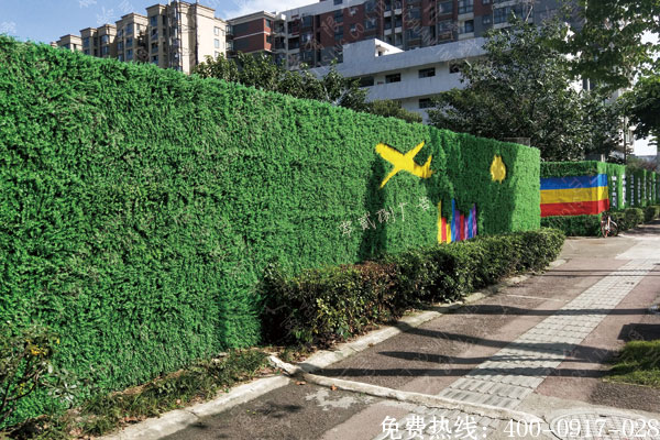 而現(xiàn)在越來(lái)越多建設(shè)工程施工現(xiàn)場(chǎng)都設(shè)置整潔美觀的封閉式硬質(zhì)地草皮圍擋,是指用綠色綠植來(lái)做裝飾的一種圍擋,其結(jié)構(gòu)的構(gòu)成方式是在圍網(wǎng)上覆蓋一層綠植即人造草坪也叫假草坪,常規(guī)高度為2.5米,人造草坪圍擋也叫仿真綠植圍擋、綠植文化墻。