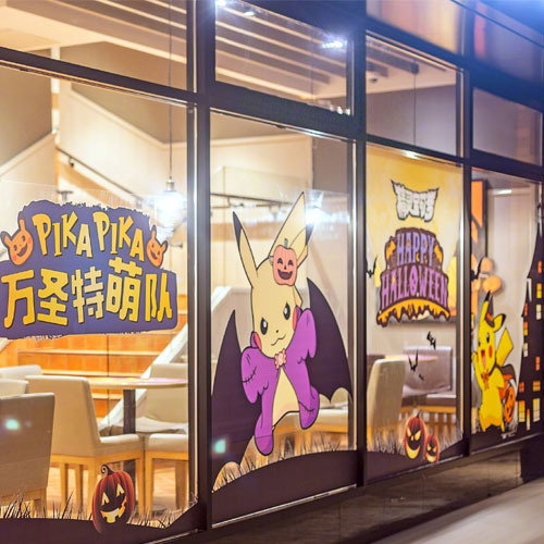 商鋪玻璃貼皮卡丘主題畫面制作安裝