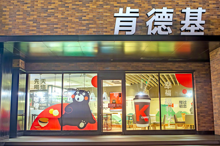 商鋪半透明熊本熊主題半透明玻璃貼畫面制作安裝