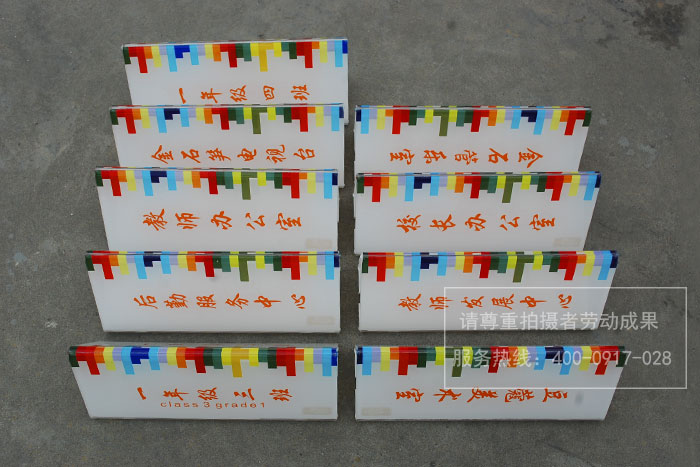 其實(shí)很多客戶把科室牌也叫做門牌,但是相對(duì)來(lái)講門牌的包括范圍要更廣泛一些??剖遗?門牌制作材質(zhì)工藝多樣,如不銹鋼、鋁板、鈦金板材、鋁型材、亞克力等,我們四川零貳捌成都科室牌制作廠家常制作的是亞克力科室牌、不銹鋼門牌,通常采用UV平板印、亞克力背雕填漆、不銹鋼UV平板印、絲網(wǎng)印刷、各種工藝雕刻(浮雕)等特殊工藝,可根據(jù)客戶需求定制制作立式科室牌、雙面門牌、可抽插更換科室牌等。