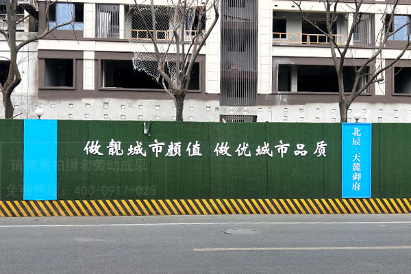 現(xiàn)在房地產(chǎn)項目圍墻圍擋廣告制作多是采用假草坪綠植來進(jìn)行制作,這種用植被組成的工地圍擋也稱為綠籬式圍擋(