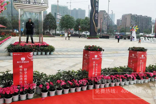 恒大濱河左岸樓盤營銷中心入口處花壇KT板包柱廣告制作安裝