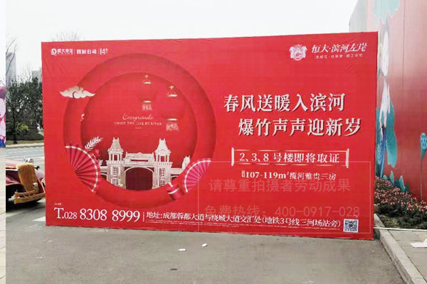 恒大濱河左岸房地產圍擋噴繪廣告畫面制作安裝