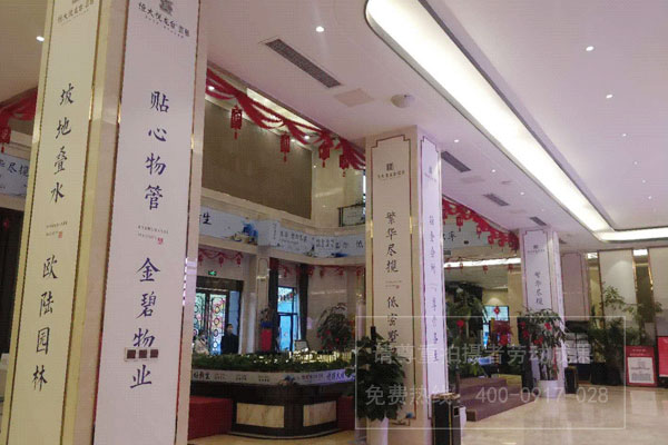 恒大地產(chǎn)悅龍臺樓盤營銷中心KT板吊旗制作安裝