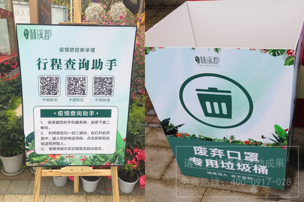 恒大林溪郡疫情查詢二維碼KT板展板及KT板廢棄口罩專用垃圾桶制作安裝