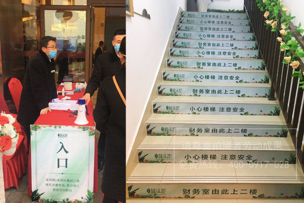疫情期間地產(chǎn)樓盤銷售中心入口處指示牌/樓體臺階指示車貼畫面制作安裝