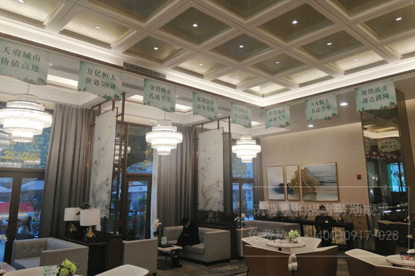 樓盤營銷中心洽談區(qū)吊旗廣告制作安裝