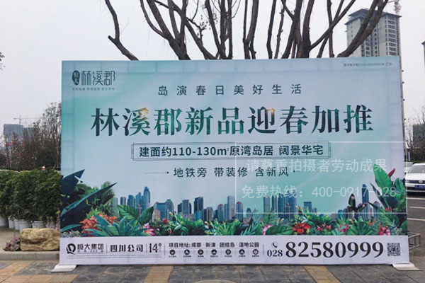 恒大地產(chǎn)林溪郡樓盤項目戶外桁架搭建噴繪廣告畫面制作安裝