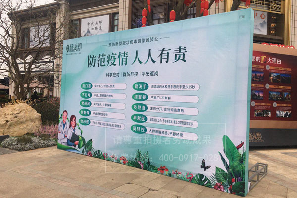 恒大地產(chǎn)林溪郡樓盤項目戶外防疫宣傳桁架搭建/噴繪廣告畫面制作安裝