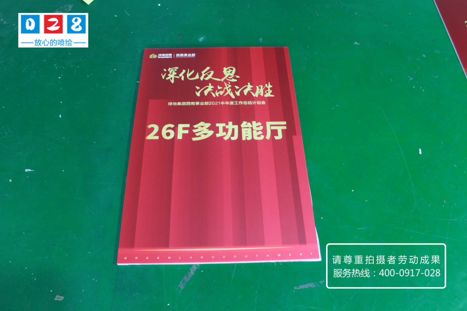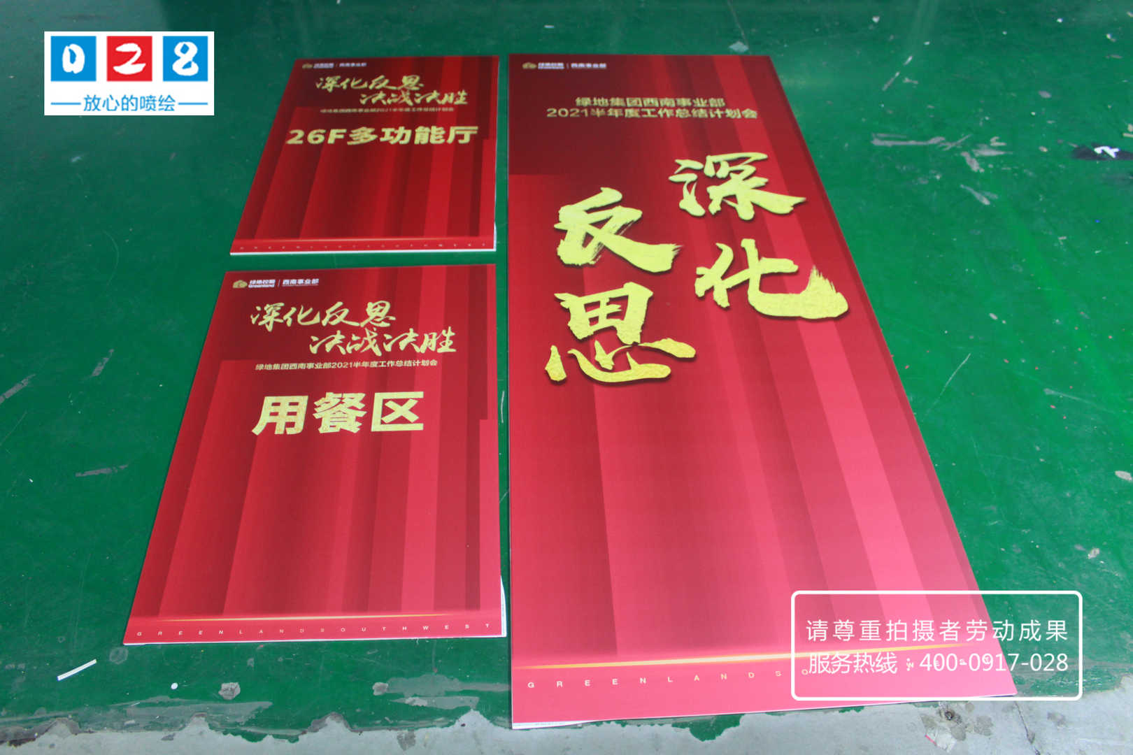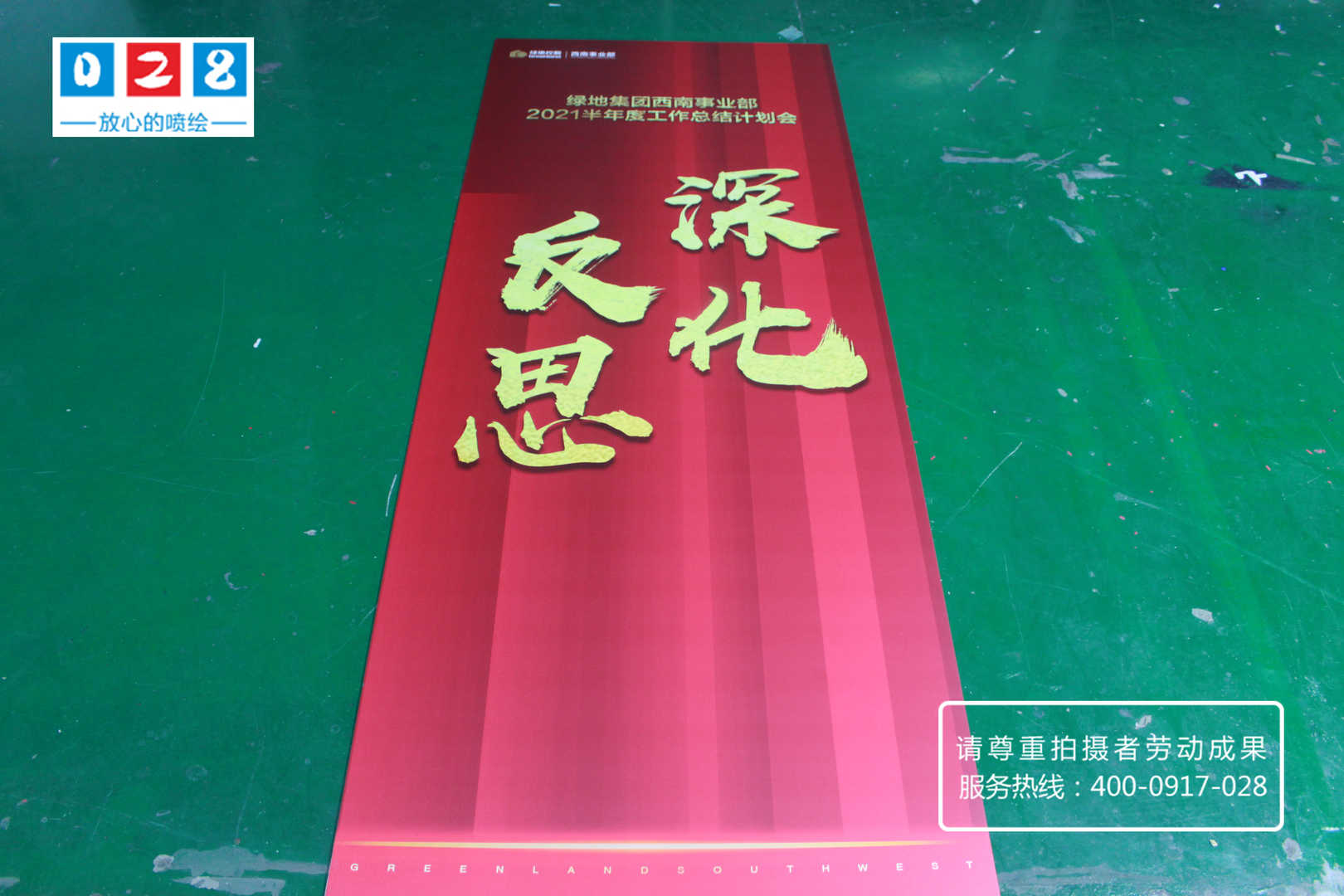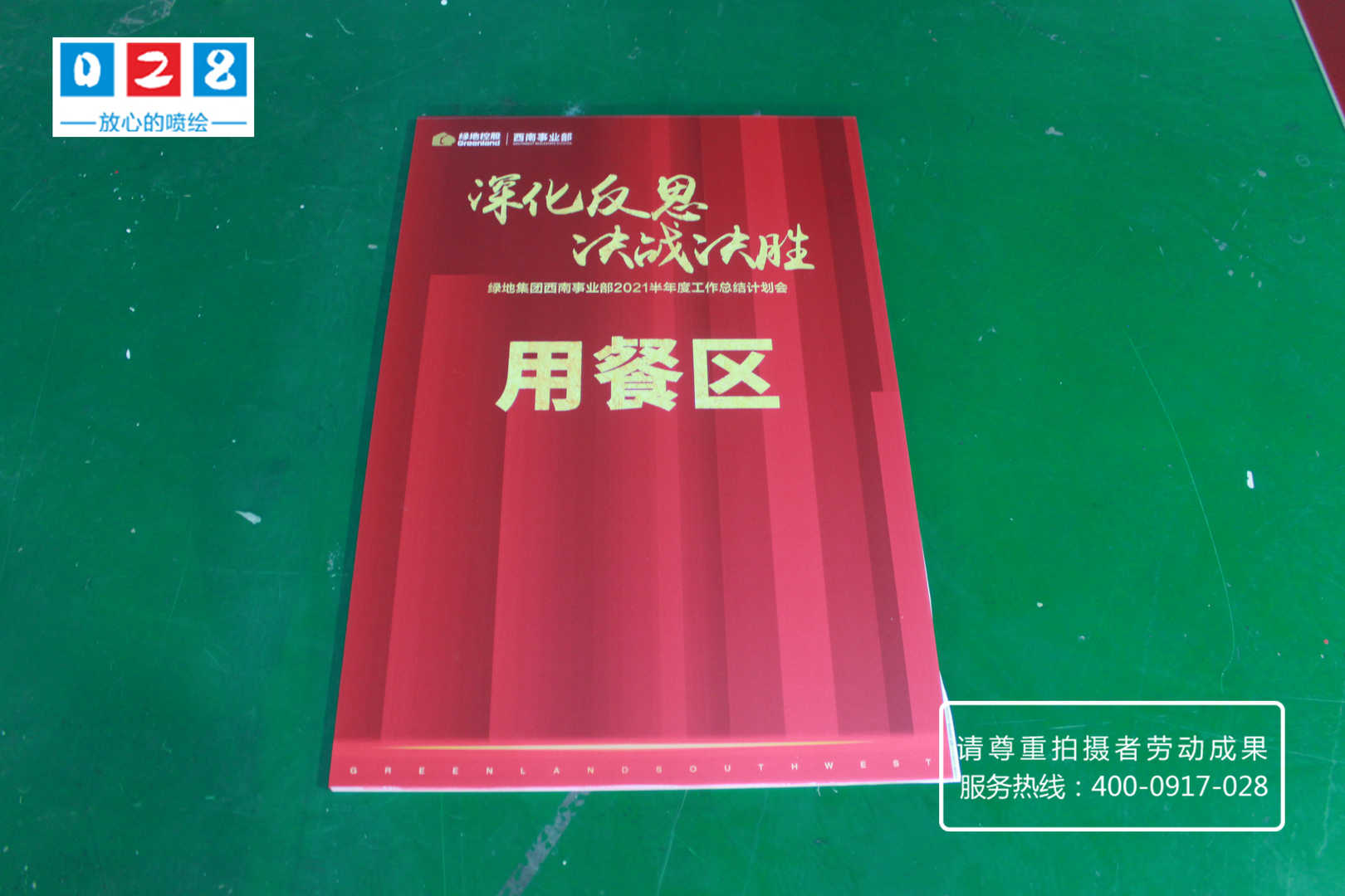 綠地集團(tuán)西南事業(yè)部門2021年半年度工作總結(jié)計(jì)劃會(huì)流程說(shuō)明牌制作,采用KT板裱背膠UV噴繪寫真