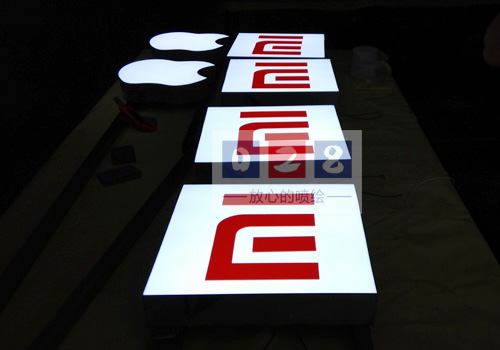 小米橘紅色樹脂標(biāo)志發(fā)光效果