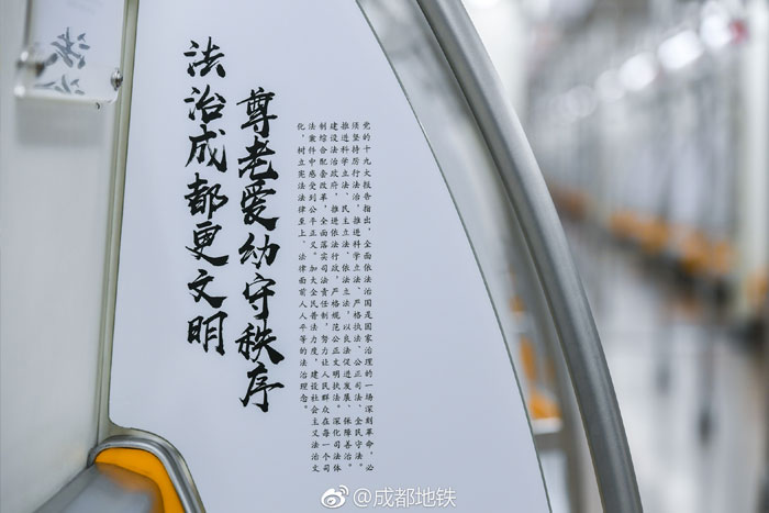 為不斷推進(jìn)成都市依法治市工作,大力弘揚(yáng)社會主義法治精神,積極營造全民尊法、學(xué)法、守法、用法的良好法治氛圍,由成都市司法局、成都市國資委和成都軌道集團(tuán)聯(lián)合打造的西部首個法治文化主題列車“法治號”,于2018年05月09日從成都地鐵2號線成都行政學(xué)院站緩緩駛出,與市民乘客正式見面。