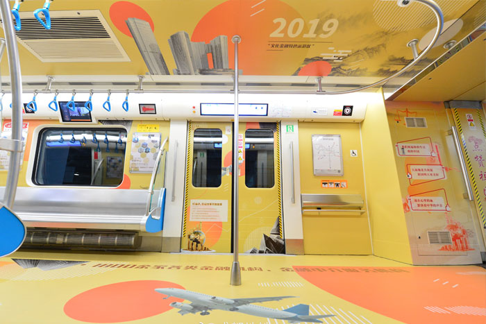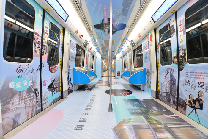“獻(xiàn)禮祖國(guó)·青羊追夢(mèng)”主題列車共有6節(jié)車廂。圍繞“我愛你祖國(guó)”“文博青羊”“非遺傳承”“少城記憶”“財(cái)富基因”“新城崛起”六個(gè)方面,以簡(jiǎn)約明快的創(chuàng)作風(fēng)格,勾勒出70年來青羊區(qū)的經(jīng)濟(jì)社會(huì)發(fā)展,彰顯青羊開放、人文、現(xiàn)代、優(yōu)美的獨(dú)特城市氣質(zhì)。