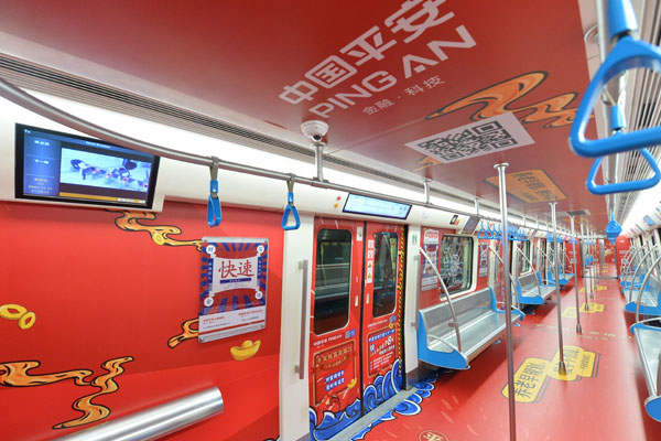 紅紅火火!又一主題列車亮相1號線!11月14日,“平安財富金瑞”號列車正式亮相地鐵1號線。此次主題列車整體風格偏國潮復古風,以紅、藍為主色調,金色點綴其間,畫面中運用了祥云、錦里、元寶等大量元素,展現時尚與活力。