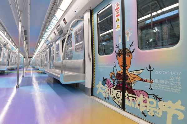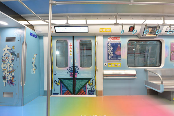 大涼山國(guó)際戲劇節(jié)主題列車在成都地鐵7號(hào)線開跑。整列車主視覺以幻彩色鋪設(shè)地面和天空,車身配以大涼山彝族傳統(tǒng)文化的圖騰符號(hào)及經(jīng)典戲劇中的獨(dú)特元素和臺(tái)詞,讓戲劇仿佛在您眼前上演。