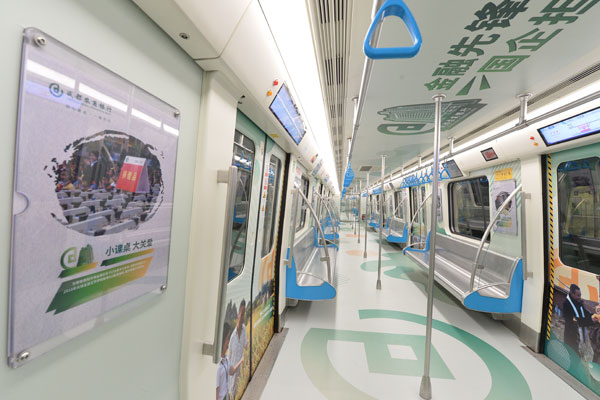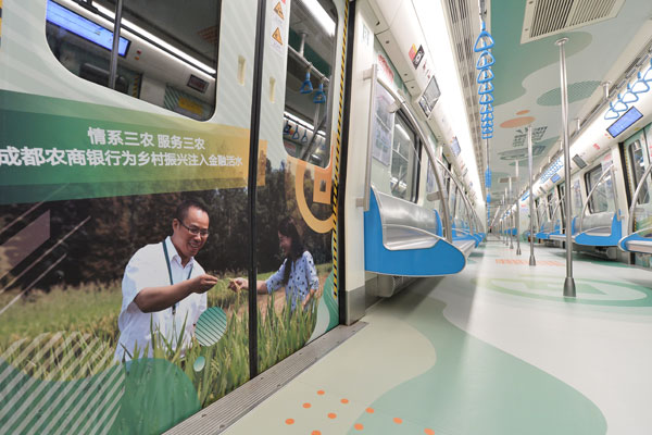 成都地鐵扶貧擔當號主題列車車廂車貼制作安裝
