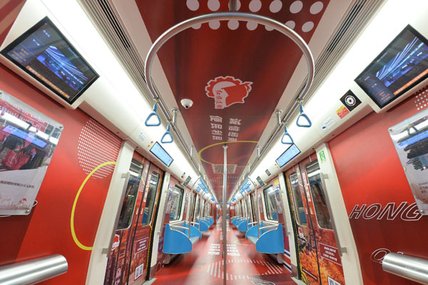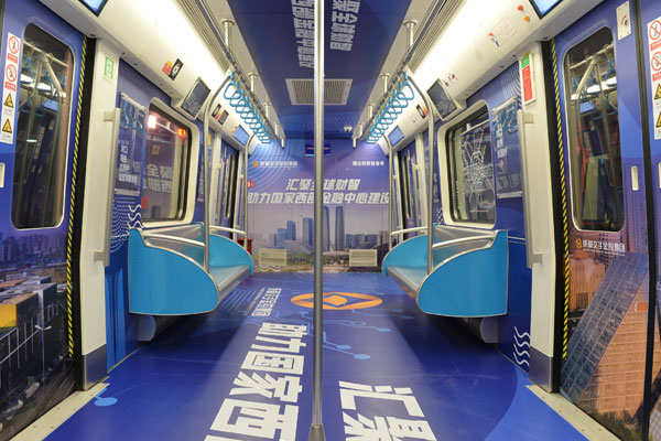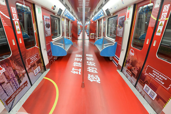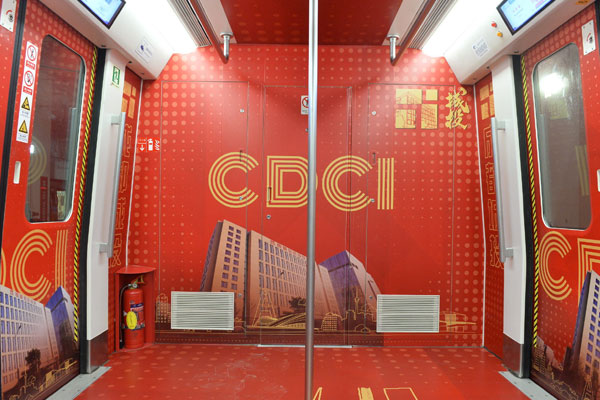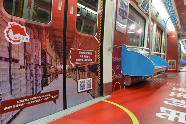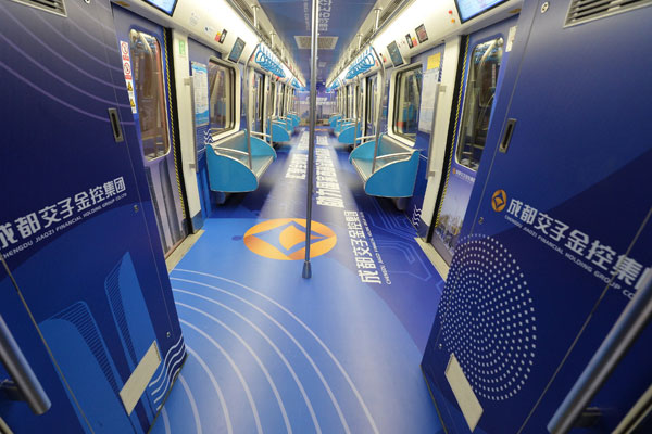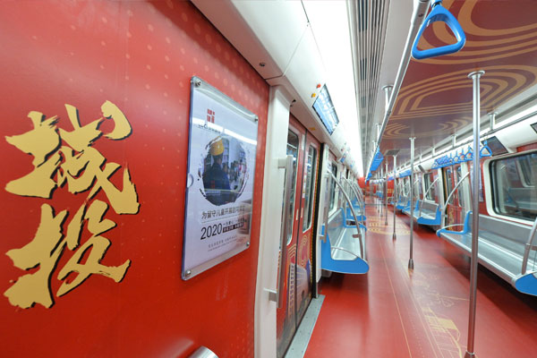 成都地鐵1號(hào)線扶貧擔(dān)當(dāng)號(hào)主題列車車廂內(nèi)照片