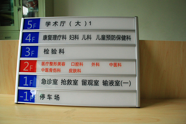 隨著社會的不斷發(fā)展,人們生活水平的不斷提高,醫(yī)院作為一個比較特殊的服務(wù)機構(gòu),在當(dāng)下的一個不斷創(chuàng)新的社會環(huán)境中,群眾們對于醫(yī)院的一個整體環(huán)境也在不斷地提高需求。醫(yī)院這一機構(gòu)作為一所比較特殊的公共場所,它所組成的架構(gòu)是比較復(fù)雜的,醫(yī)院內(nèi)部構(gòu)造多種多樣,線路也是復(fù)雜多變。一般比較大型的醫(yī)院都是幾層樓起步,并且每層樓都有許多的科室以及病房等。所以,為了便于人們的生活而制作出來了一套較好的醫(yī)療標(biāo)識標(biāo)牌系統(tǒng)。