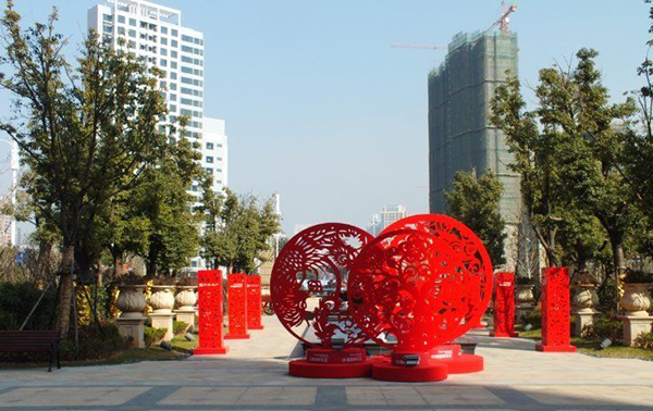 室外的門頭門面裝飾,則是制作一些喜氣書字的橫聯(lián),以及一些花燈、龍燈,也可以豎立一些藝術(shù)字牌。亦或者是一些KT板拱門、展板、噴繪類的廣告畫面等等。